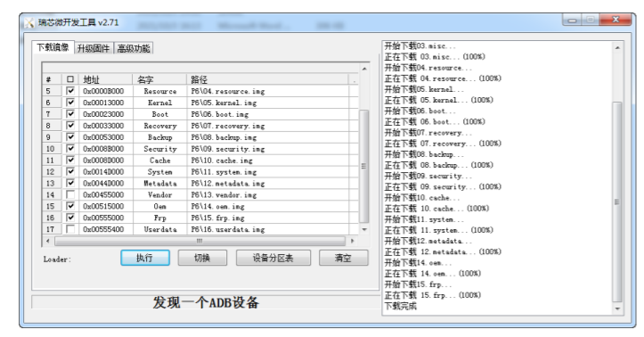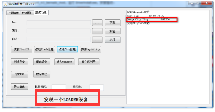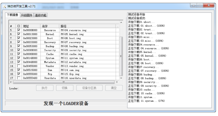 此时,软件最下方会显示发现一个 Loader 设备,说明此时机器已进入刷机模式,如果不是